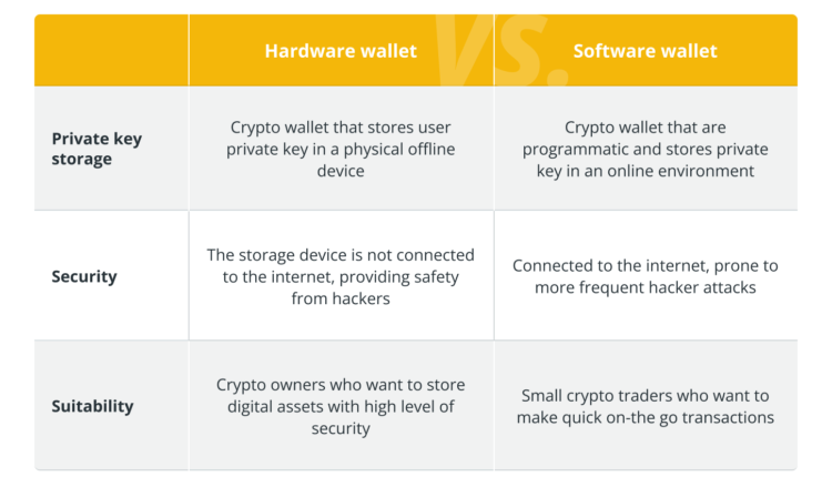 While software wallets allow ease and convenience, hardware wallets are known for their secure storage. A good understanding of the differences among the two options, user requirements and the level of digital asset custody needed can help users make informed choices on their wallet preference.