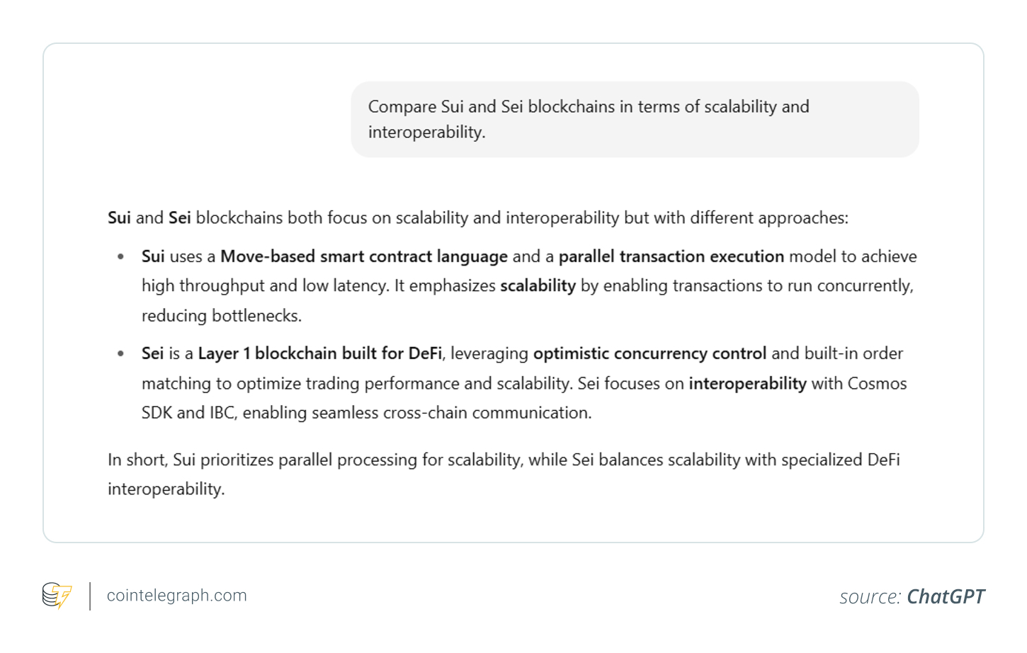 “Compare Sui and Sei blockchains in terms of scalability and interoperability.”