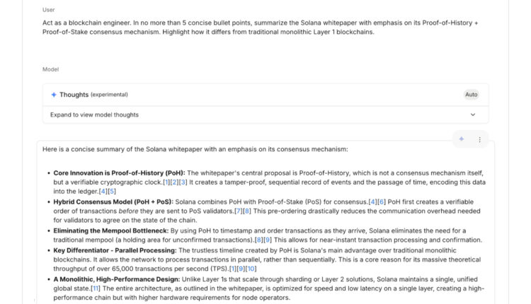 Treat Gemini’s output as a highly organized first draft. Any critical data points — such as token allocation percentages or partnership announcements — must be cross-referenced with primary sources like the official project website, white paper, audit reports, press releases or a blockchain explorer. The real advantage in this research paradigm comes from the synergy between machine-scale processing and human critical thinking.