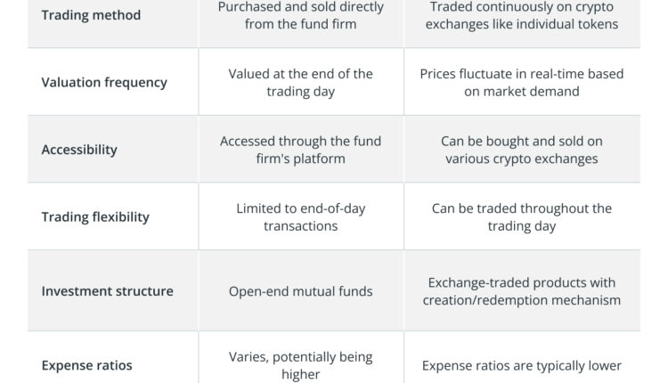 Here’s a summary of the differences between crypto index funds and crypto ETFs: