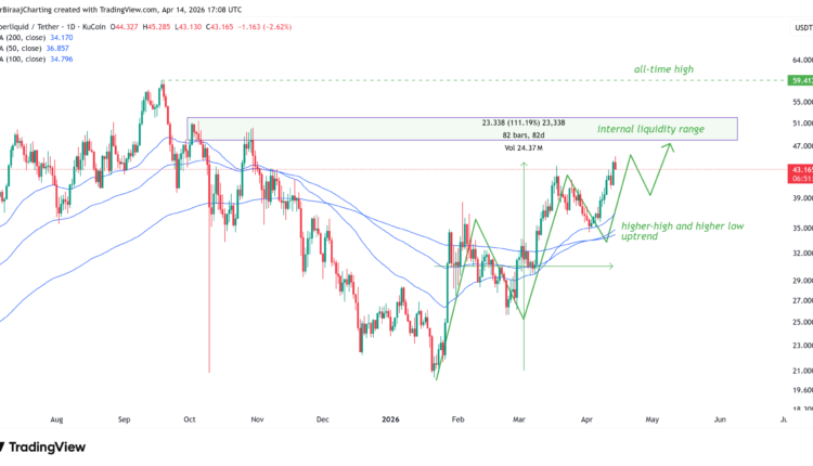 Hyperliquid’s native token HYPE (HYPE) re-tested $45 on Tuesday, marking its highest value since October 31, 2025. The rally extends a 108% rally from its yearly low at $21 on Jan. 21.