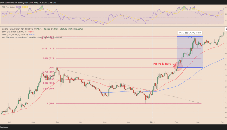 Hyperliquid’s native token, HYPE, is mirroring a strikingly similar price structure to Solana’s (SOL) early 2021 breakout—one that preceded a 300% rally.