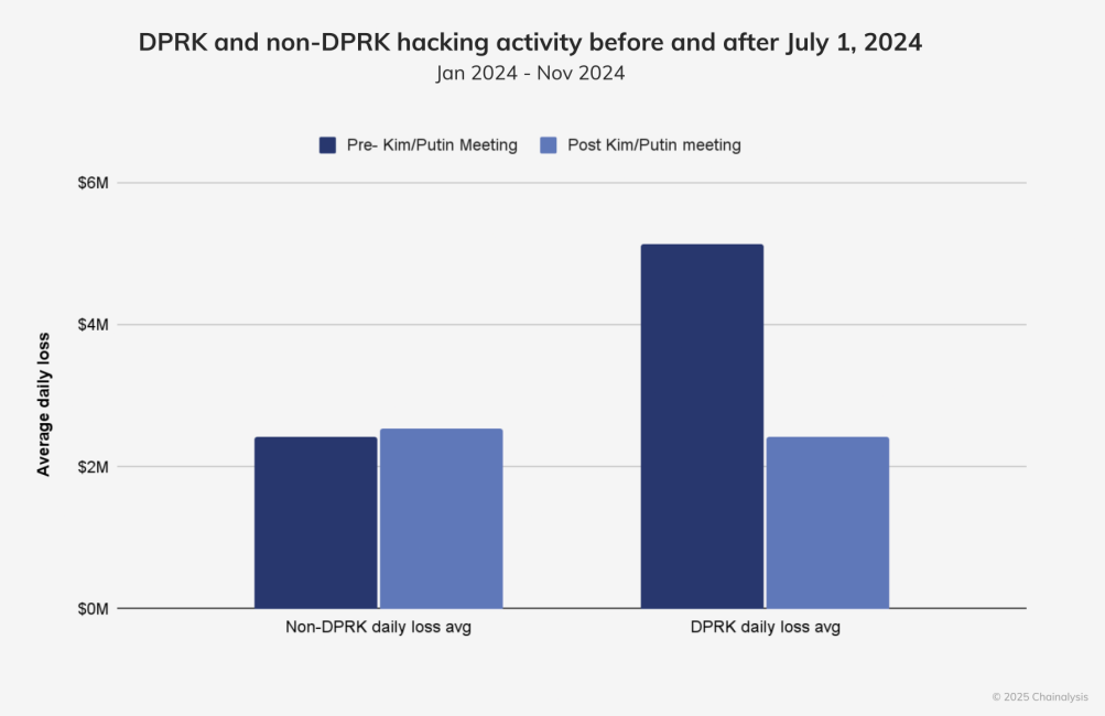According to blockchain analytics firm Chainalysis, illicit activity tied to North Korean cyber actors sharply declined after July 1, 2024, despite a surge in attacks earlier that year.
