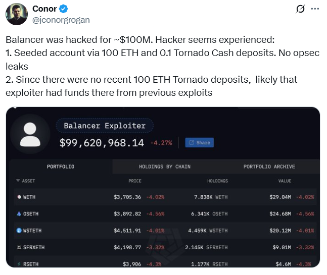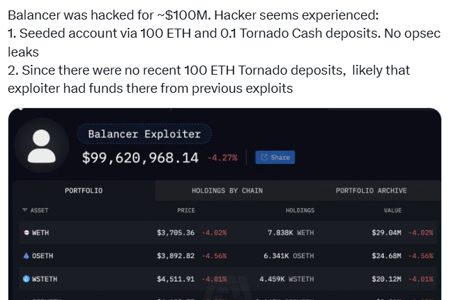 “Our team is working with leading security researchers to understand the issue and will share additional findings and a full post-mortem as soon as possible,” wrote Balancer in its latest X update on Monday.