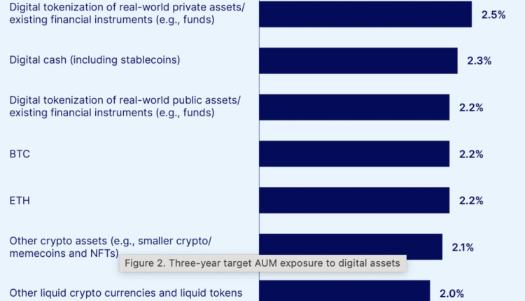 The study found that digital assets currently make up about 7% of institutional portfolios, a figure expected to climb to 16% by 2028.