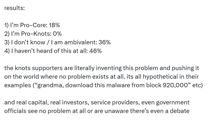 Of the remaining 18%, all the respondents signalled a preference for Bitcoin Core’s argument.