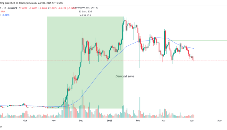 There is a chance that the altcoin finds support from the 200-day moving average (orange line) around the $1.70 to $1.80 mark, but XRP price has not tested this level since Nov. 5, 2024.