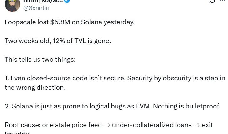 An exploit on Solana’s Loopscale protocol shows that closed source is not a one-size-fits-all solution for keeping malicious actors out. On April 26, just weeks after launching, the closed-source DeFi lending platform suffered a $5.8-million exploit.