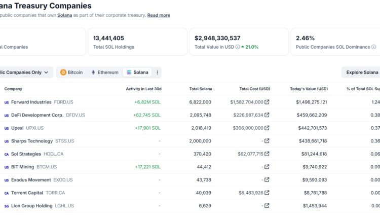 Solana (SOL) treasury companies are following the trend set by Bitcoin (BTC) and Ether (ETH), whose adoption by public companies has boosted stock prices and graced media headlines.
