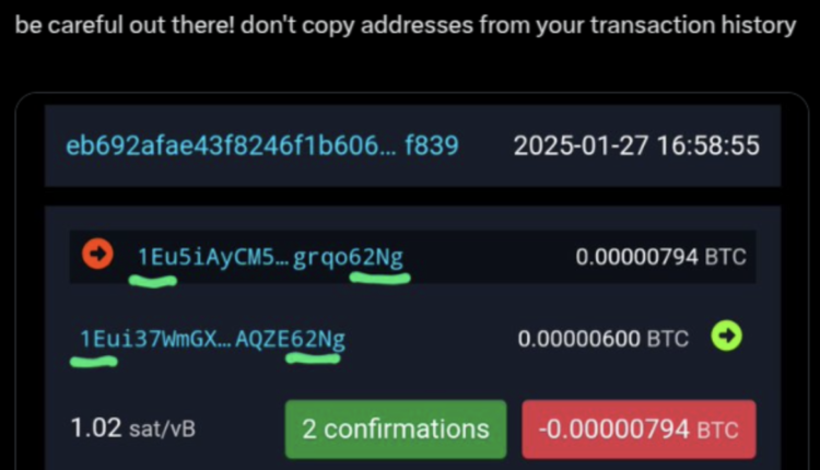 According to Lopp’s Feb 6 article, the threat actors generate BTC addresses that match the first and last digits of addresses from the victim’s transaction history. Lopp analyzed the Bitcoin blockchain history for this type of attack and found: