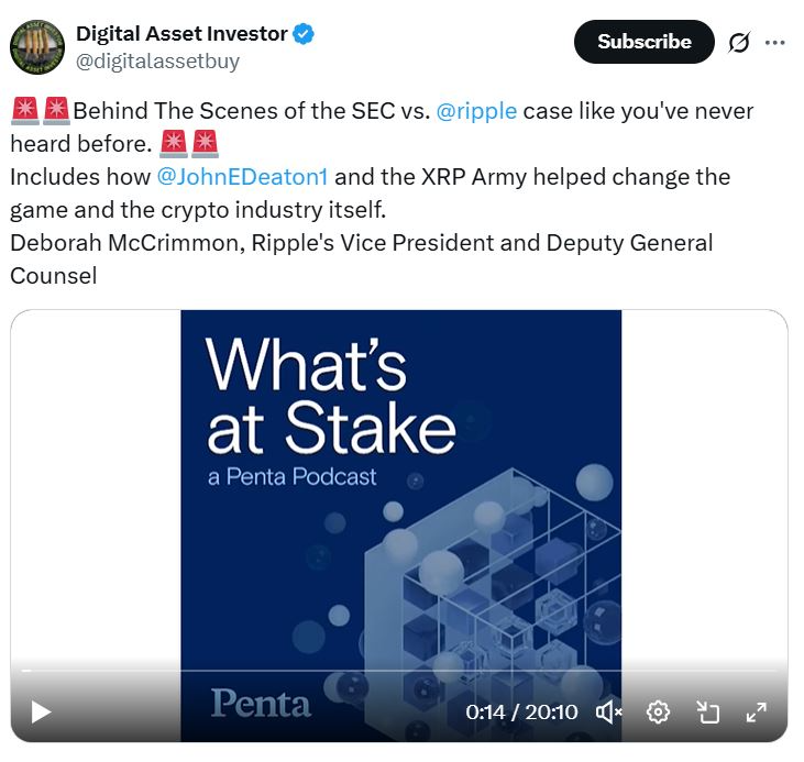 Deborah McCrimmon, Ripple’s vice president and deputy general counsel, told The Penta Podcast in an episode on Monday that Deaton’s efforts and the XRP army gave the court visibility that the case “impacts a lot of people,” not just Ripple.