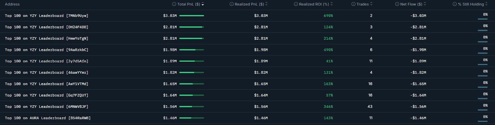 The biggest loser, according to Nansen, is a wallet that realized a loss of $1.8 million, followed by a wallet that lost $1.2 million. One trader is currently still holding their YZY tokens with an unrealized loss of more than $800,000.