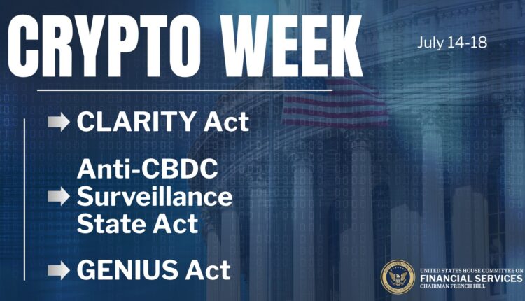 Final passage votes on the Clarity Act and the Anti-CBDC Surveillance State Act are scheduled for Thursday. The GENIUS Act’s final passage vote is expected on Friday.