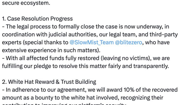 “The legal process to formally close the case is now underway […]. With all affected funds fully restored (leaving no victims), we are fulfilling our pledge to resolve this matter fairly and transparently.”