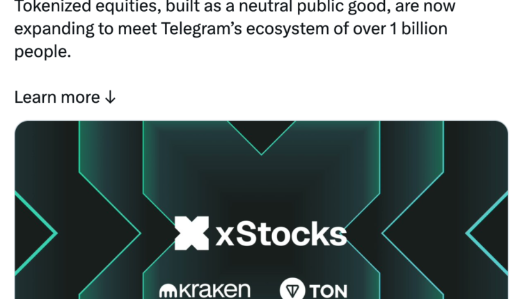 “Launching xStocks on TON brings tokenized equities onto truly open infrastructure,” Kraken co-CEO Arjun Sethi said in the announcement, adding that the launch marks the first time for Telegram users to access tokenized US equities onchain.