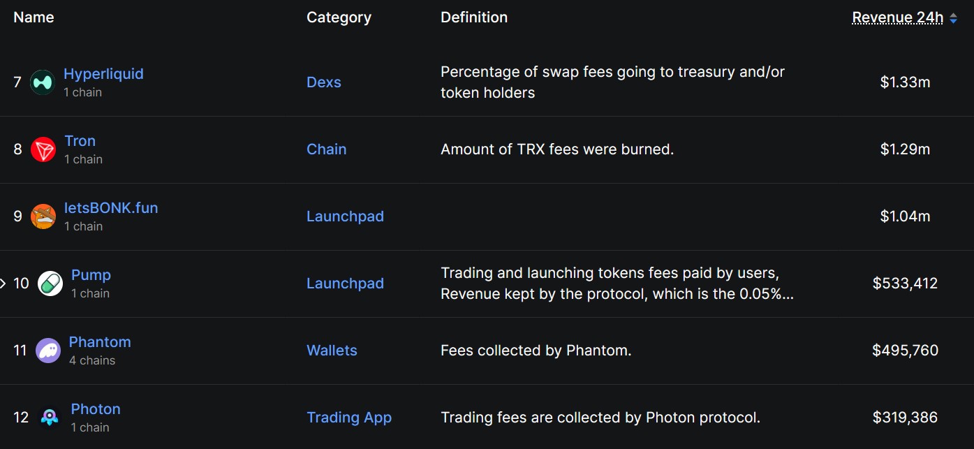 Pump.fun still dominates the 30-day revenue chart