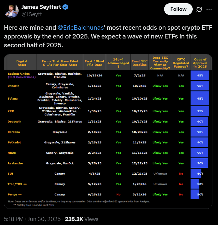 Currently, there are seven pending Solana ETF applications, based on S-1 filings with the US Securities and Exchange Commission.