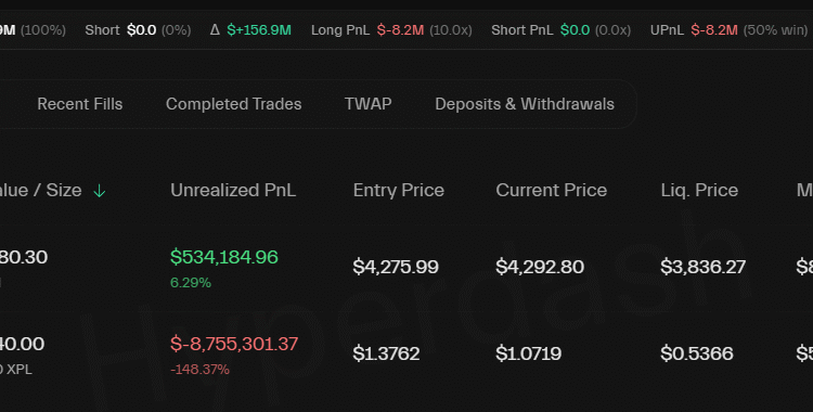From a profit of approximately $44 million just 13 days ago, the celebrity is now sitting on an unrealized loss of $8.7 million on their 5x leveraged long position, which involves betting on the price appreciation of the Plasma (XPL) token, according to blockchain data from Hyperdash. The position has a liquidation threshold of $0.5366.