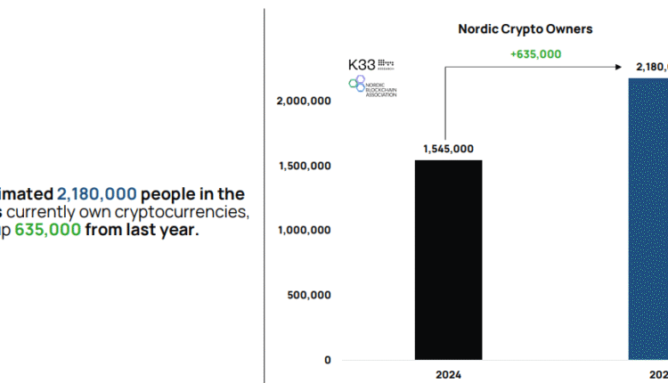 Crypto ownership across the Nordic regions, which includes Denmark, Norway, Sweden and Finland, is sitting at around 2.1 million people out of an estimated population of over 28 million, according to digital asset company K33’s March Nordic crypto adoption survey.
