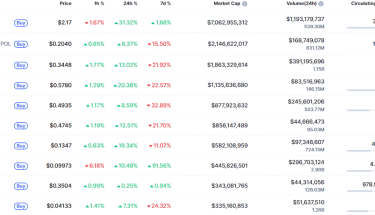 The Arbitrum (ARB) and Immutable (IMX) tokens also registered double-digit gains, while the Polygon (POL) token had an 8% rebound in the 24 hours up to the time of writing.