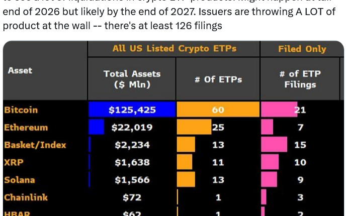 “We’re going to see a lot of liquidations in crypto ETP products. Might happen at [the] tail end of 2026 but likely by the end of 2027,” Seyffart said, adding that over 126 ETP applications are currently awaiting an outcome from the US Securities and Exchange Commission.