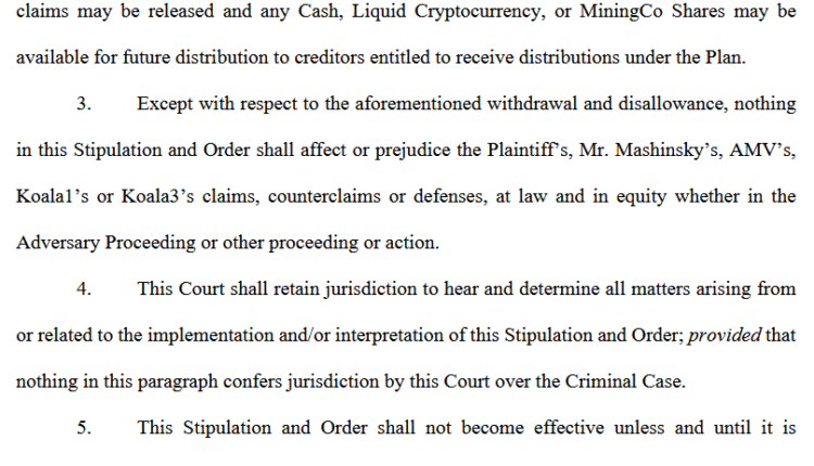 The agreement stipulates that Celsius debtors can distribute funds tied up due to claims made by Mashinsky and the three related entities.