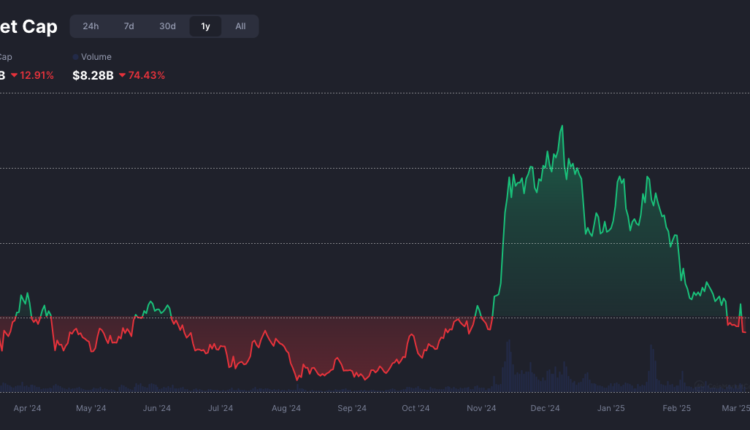 The memecoin market has gradually declined after peaking at a record-breaking market cap of $137 billion on Dec. 8, briefly rising and dropping amid memecoin launches by Trump and First Lady Melania Trump in January.