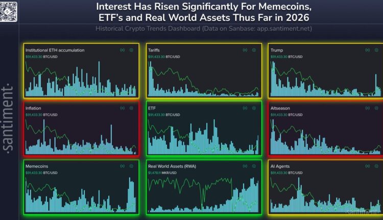 Several memecoins have recently posted strong gains, and a speculative rally pushed the market value of memecoins up, which caught traders’ attention and sparked a rise in crowd interest, the market intelligence platform Santiment said on Wednesday.