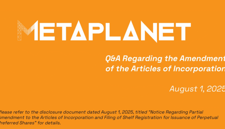 “The Company intends to actively pursue equity financing as part of its ‘Bitcoin Strategy,’ which aims to acquire 210,000 BTC by the end of 2027,” it said. “We believe that introducing Bitcoin-backed preferred shares represents a pioneering effort to fill this gap.”