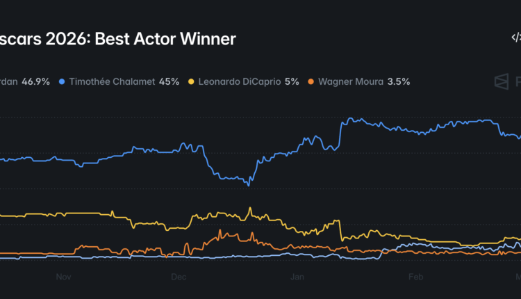The Academy of Motion Picture Arts and Sciences awards show will air on March 15, and the prediction market for Oscars’ Best Actor has over $5.6 million in trading volume on Polymarket at the time of publication.