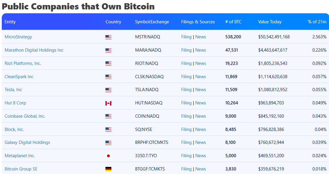 Strategy is the world’s largest corporate Bitcoin holder with over 538,200 Bitcoin worth over $50.5 billion, Bitbo data shows.