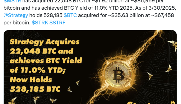 The company now holds over 528,000 Bitcoin acquired for $35.63 billion at an average price of $67,458 per BTC, announced Michael Saylor, the co-founder of Strategy, in a March 31 X post.