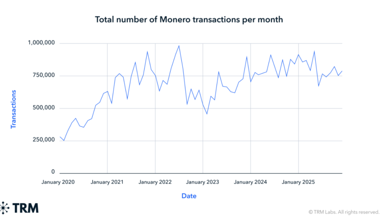 Monero transactions per month hold strong. Source: TRM Labs