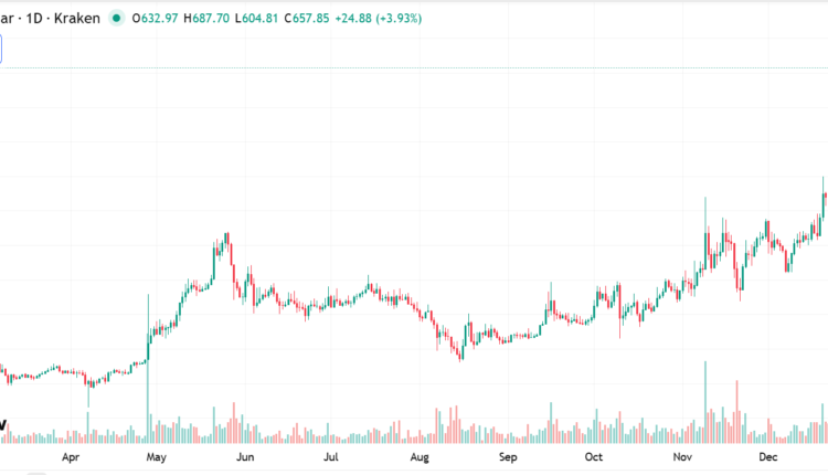 Monero (XMR) rose to a new all-time high above $687 on Tuesday, up around 14% rise over the past 24 hours, according to TradingView data.