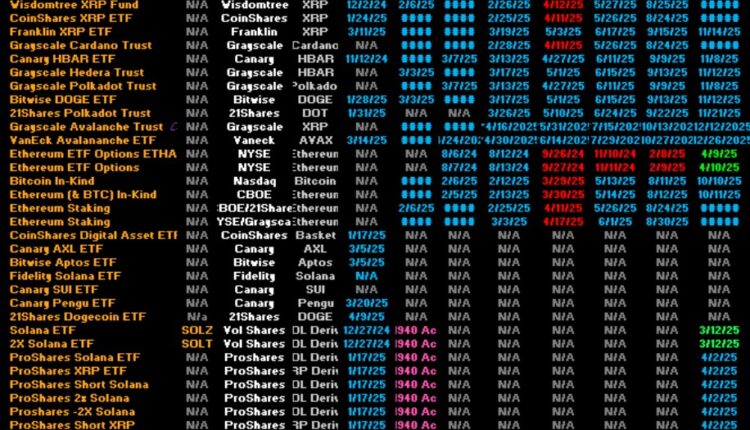 More than 70 cryptocurrency exchange-traded funds (ETFs) are slated for review by the US Securities and Exchange Commission (SEC) this year. According to Bloomberg analyst Eric Balchunas, the list includes proposed ETFs holding a range of assets, from altcoins to memecoins to derivatives instruments.