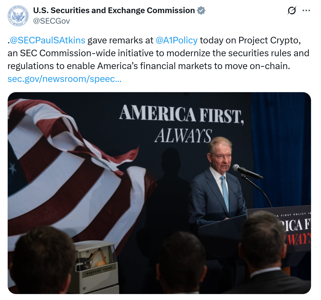 Paul Atkins gives remarks on Project Crypto. Source: SEC
