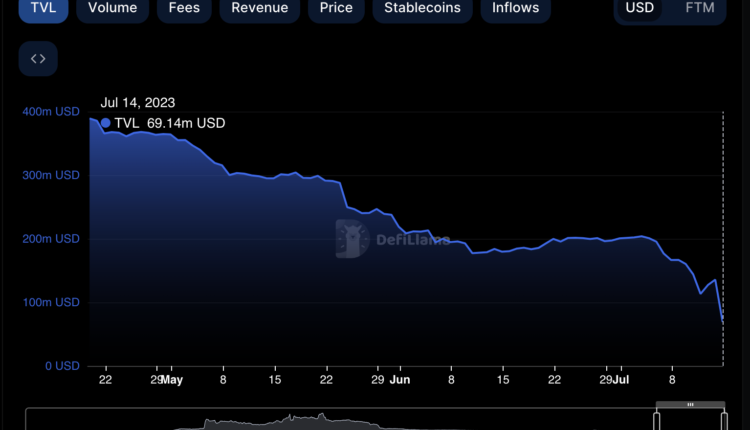 According to data from DefiLlama, Fantom’s total value locked (TVL) dropped from over $364 million in early May to about $70 million on July 14. At its peak in 2022, Fantom’s TVL topped $7.5 billion. The price of its native coin Fantom (FTM) declined from $0.41 to $0.28 over the same period.