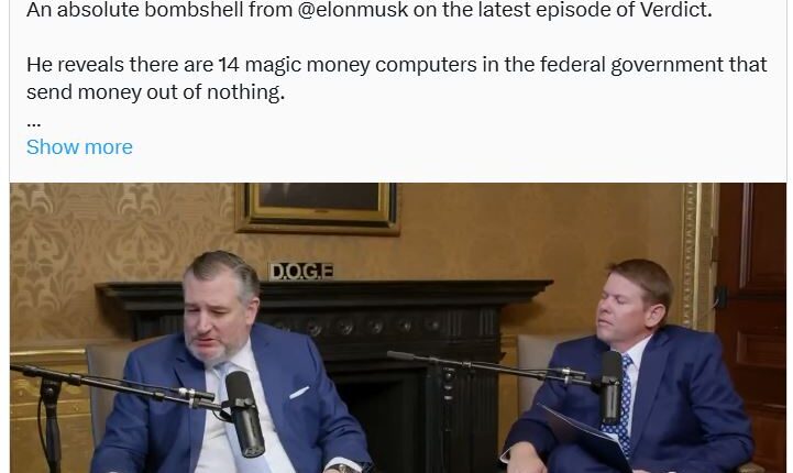 US government cost-cutting csar Elon Musk claims to have found at least 14 “magic money computers” in the federal government with the ability to send money from nothing.