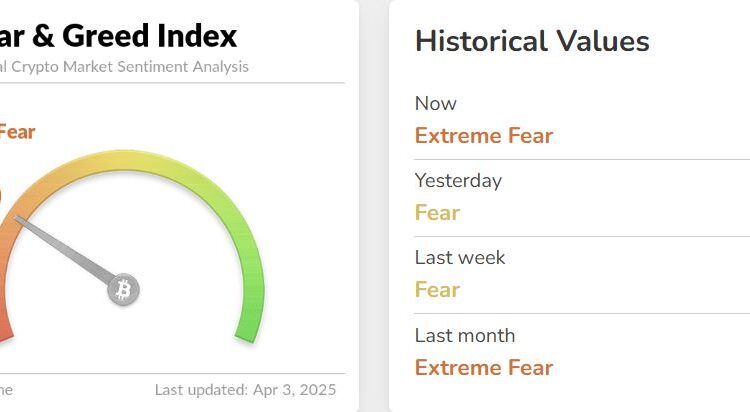 The Crypto Fear & Greed Index, which measures market sentiment for Bitcoin and other cryptocurrencies, returned a score of 25, classed as extreme fear, in its latest April 2 update.