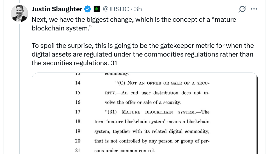 The draft also defines a “mature blockchain system” as one that, together with its related digital commodity, is not under the “common control” of any person or group.