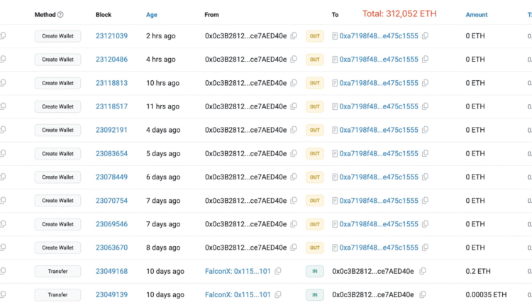 The whale acquired 312,052 Ether (ETH) across 10 newly created cryptocurrency wallets, according to crypto intelligence platform Lookonchain.