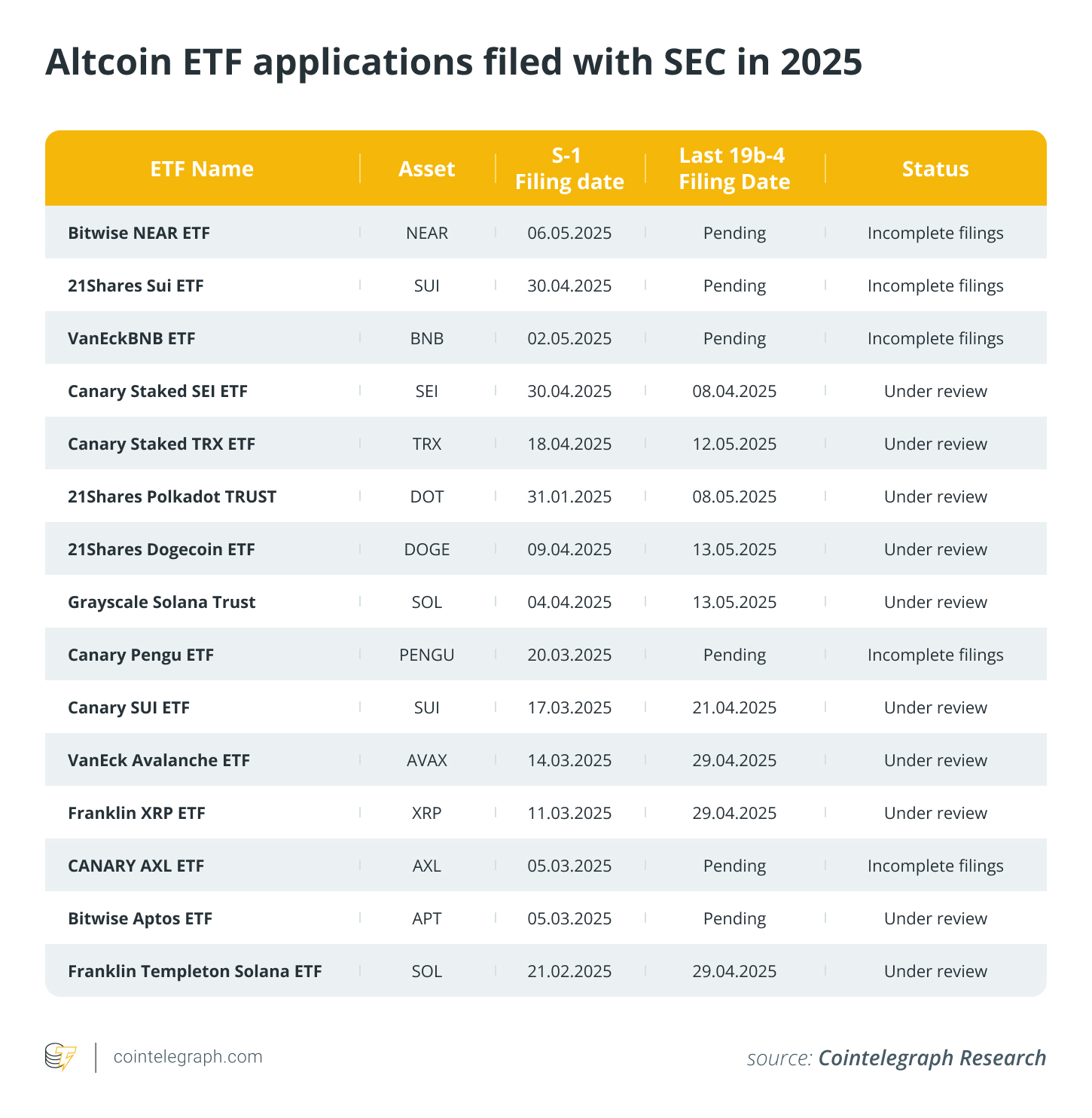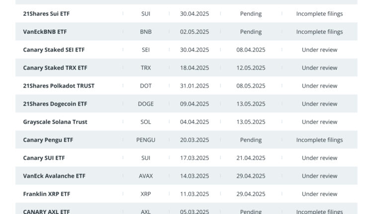 Regulatory optimism in the US has led to at least 31 altcoin exchange-traded fund (ETF) applications to the US Securities and Exchange Commission in the first half of 2025.