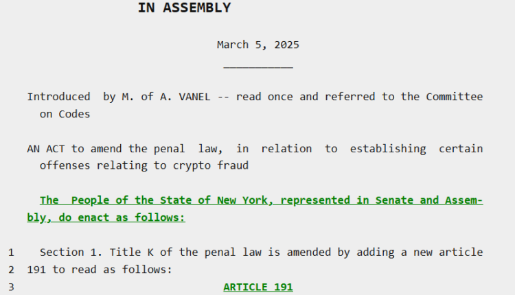 Assemblymember Clyde Vanel, chair of the New York Assembly’s Banks Committee, introduced Bill A06515 on March 5. The bill would establish criminal penalties specifically aimed at preventing cryptocurrency fraud and protecting investors from rug pulls.
