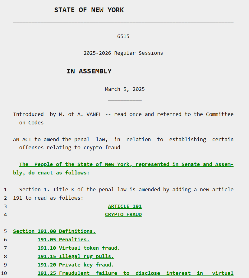 New York lawmakers have introduced legislation aimed at protecting cryptocurrency investors by targeting scams known as rug pulls, where project insiders abruptly abandon a project and drain investor funds.