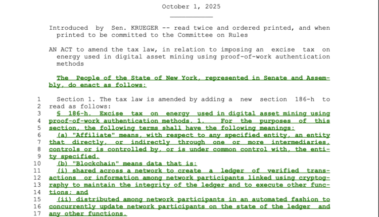 New York State Senator Liz Krueger introduced a bill on Wednesday to impose excise taxes on energy used by crypto mining companies operating facilities in the state.