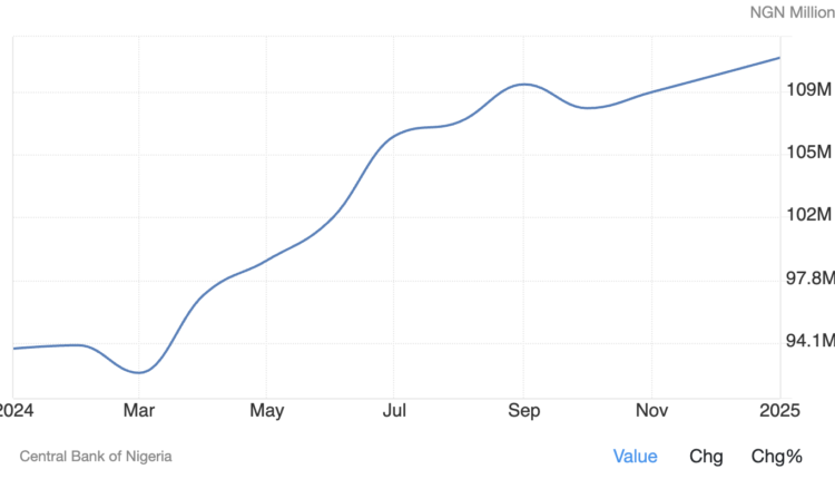 The naira M2 money supply has been rapidly increasing since March 2024. Source: Trading Economics