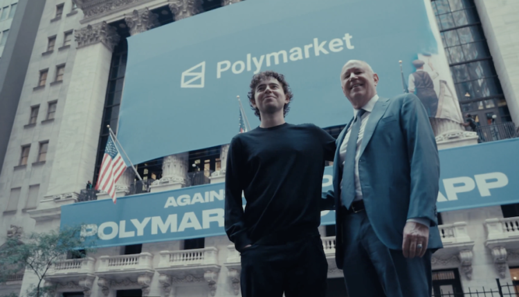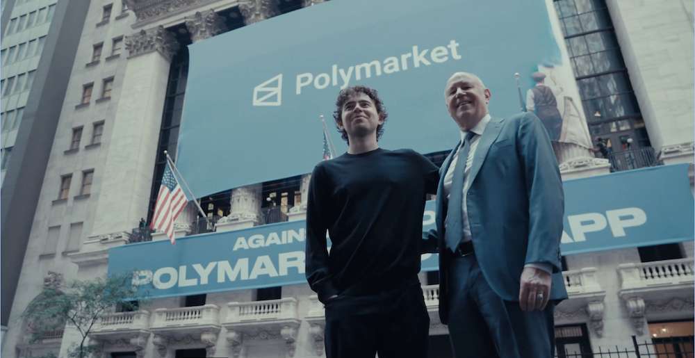 Polymarket founder Shayne Coplan (left) and Intercontinental Exchange CEO Jeffrey Sprecher (right) in front of the New York Stock Exchange after the $2 billion deal. Source: Shayne Coplan