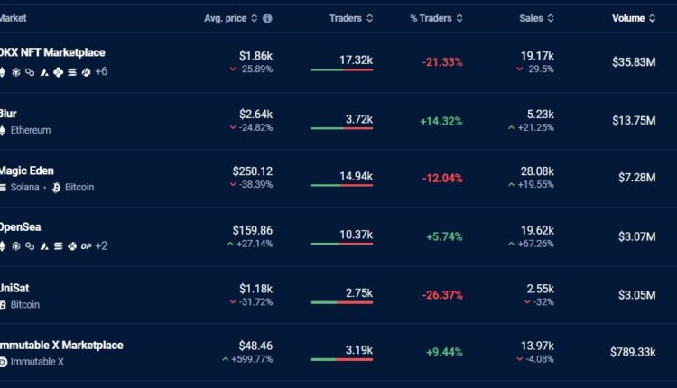 At the time of writing, the platform’s trading volume has dropped to $35 million. However, OKX’s NFT arm is still ahead of its competitors Blur, Magic Eden and OpenSea, which have a combined 24-hour trading volume of around $24 million.