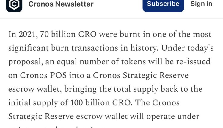 Crypto.com originally disclosed the 70-billion-CRO token burn in a now-deleted February 2021 blog post, referring to it as the “largest token burn in history” with a goal to “fully decentralize the network” at the CRO mainnet launch.