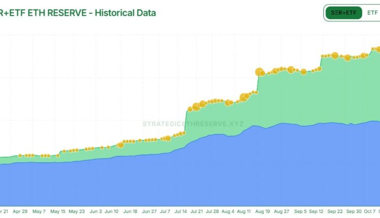 DATs and ETFs have been hoovering up ETH at record rates this year. Source: StrategicEthReserve